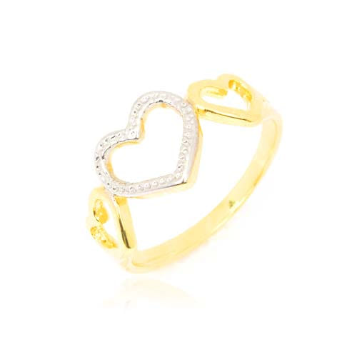 Anel 3 Corações Vazados Rodinado Meio Folheado a Ouro 18K