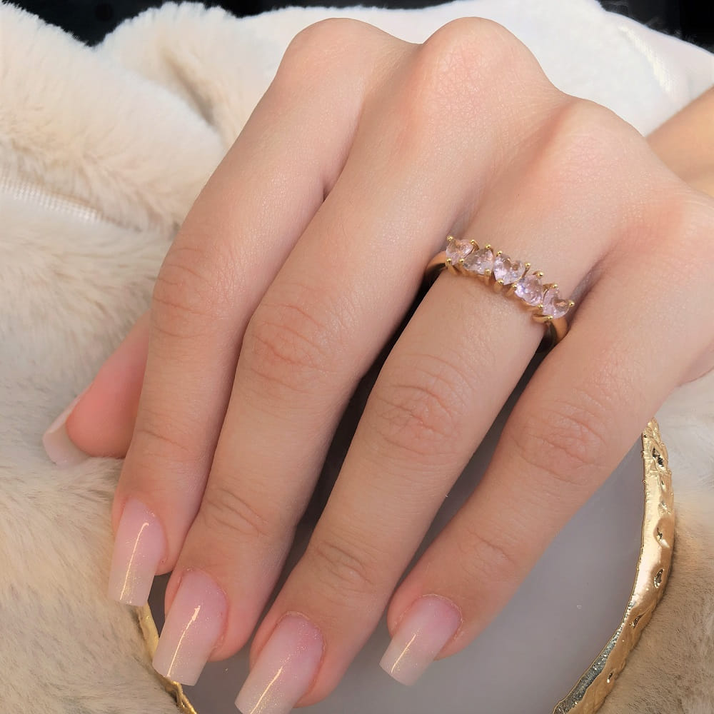 Anel 5 Corações Zircônias Rosas Folheado a Ouro 18K