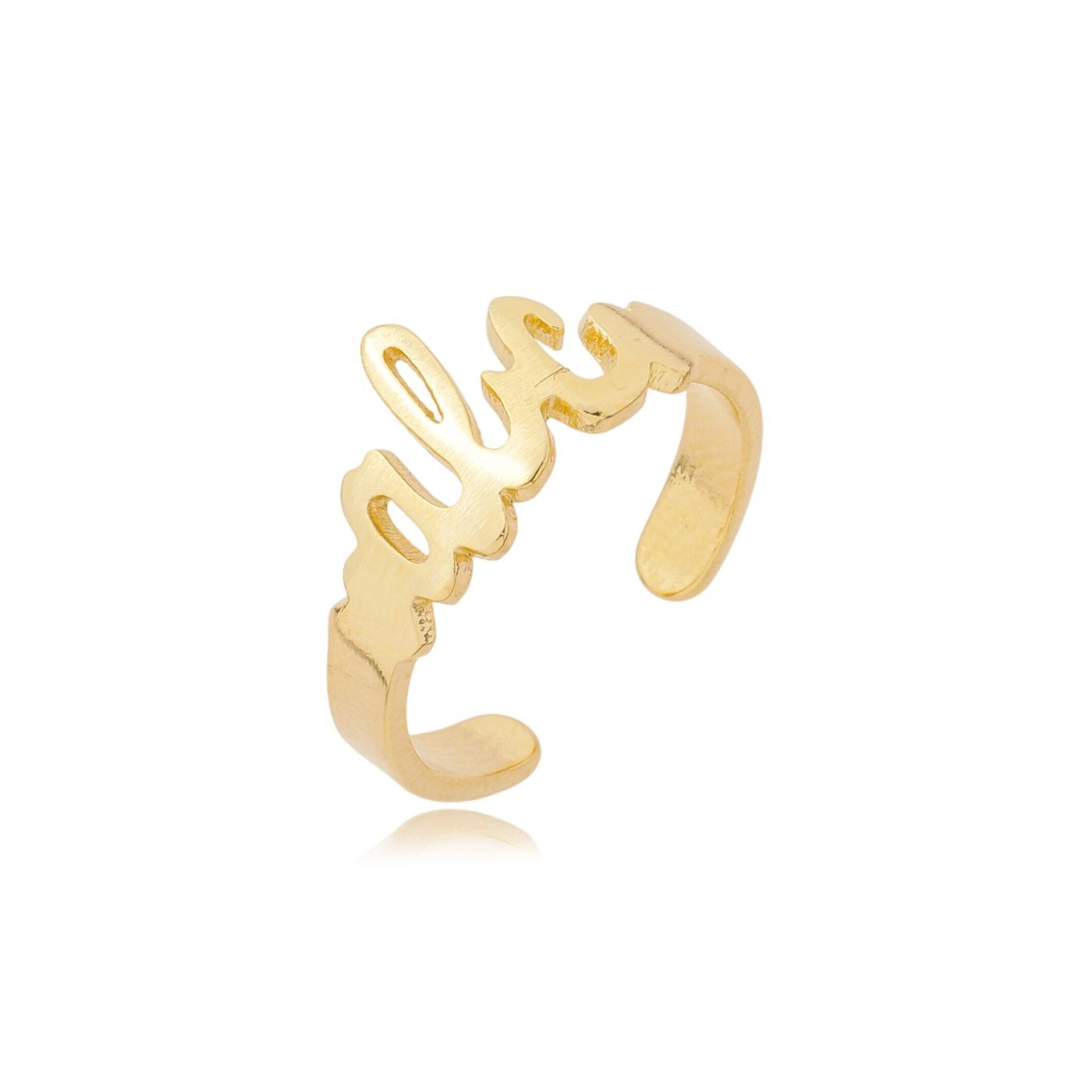 Anel ABC Manuscrito Regulável Folheado a Ouro