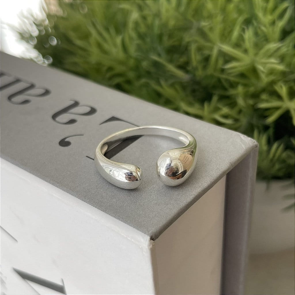 Anel Aberto Liso Pontas Esféricas Folheado a prata 925