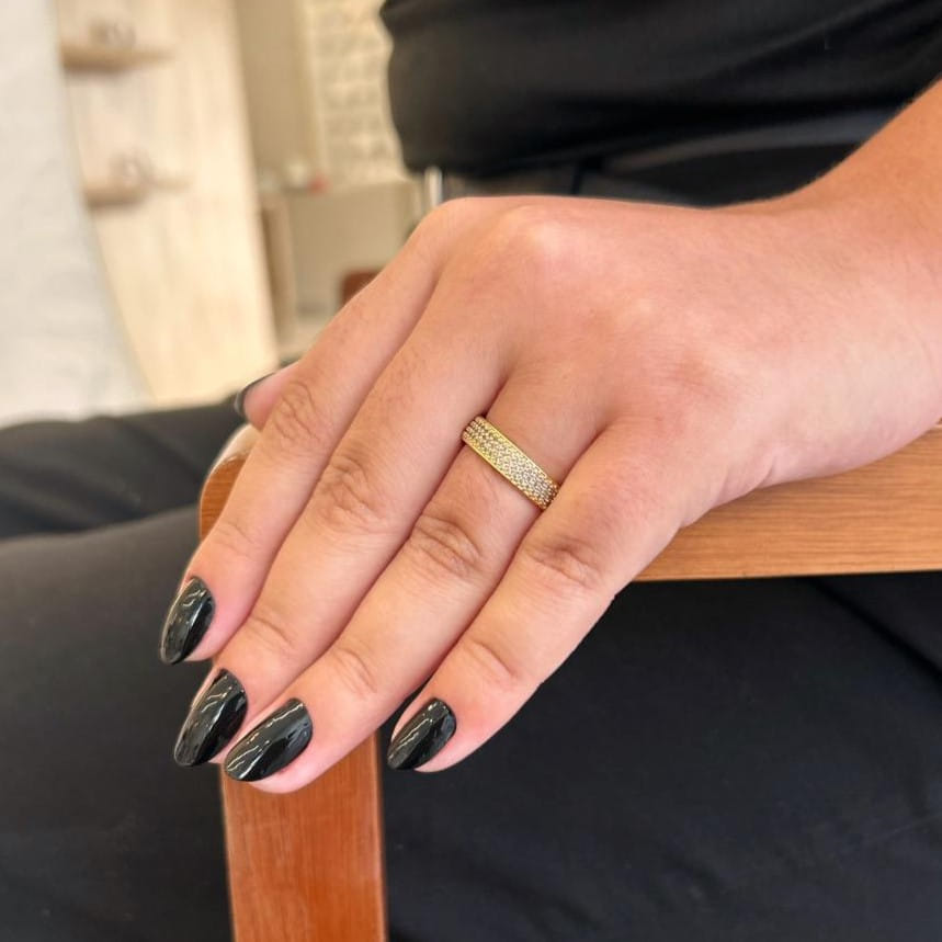 Anel Aparador 3 Fios Cravejados Reto Folheado a Ouro 18K