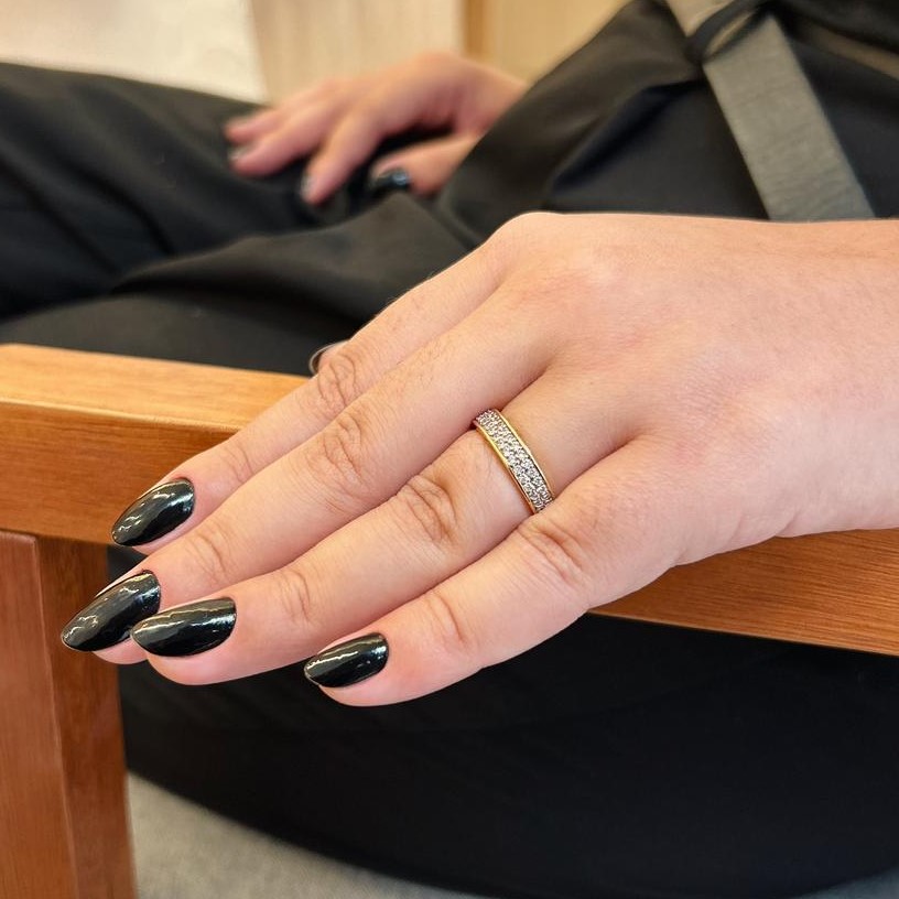 Anel Aparador Duplo Fio Cravejado Com Borda Lisa Folheado a Ouro 18K