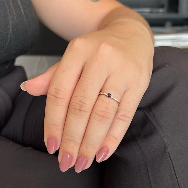 Anel Aparador E Solitário Azul Folheado a Ouro 18K