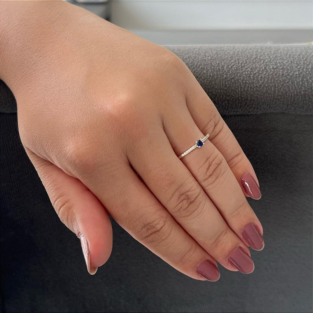 Anel Aparador e Solitário Azul Folheado a prata 925