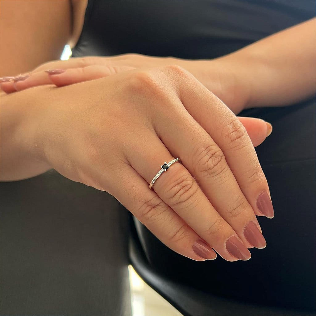 Anel Aparador e Solitário Preto Folheado a prata 925