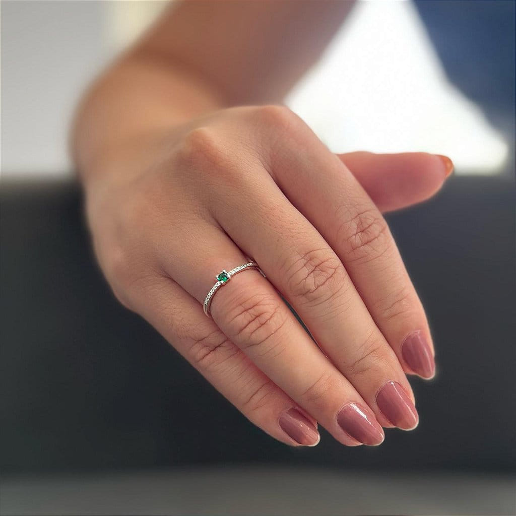 Anel Aparador e Solitário Verde Folheado a prata 925