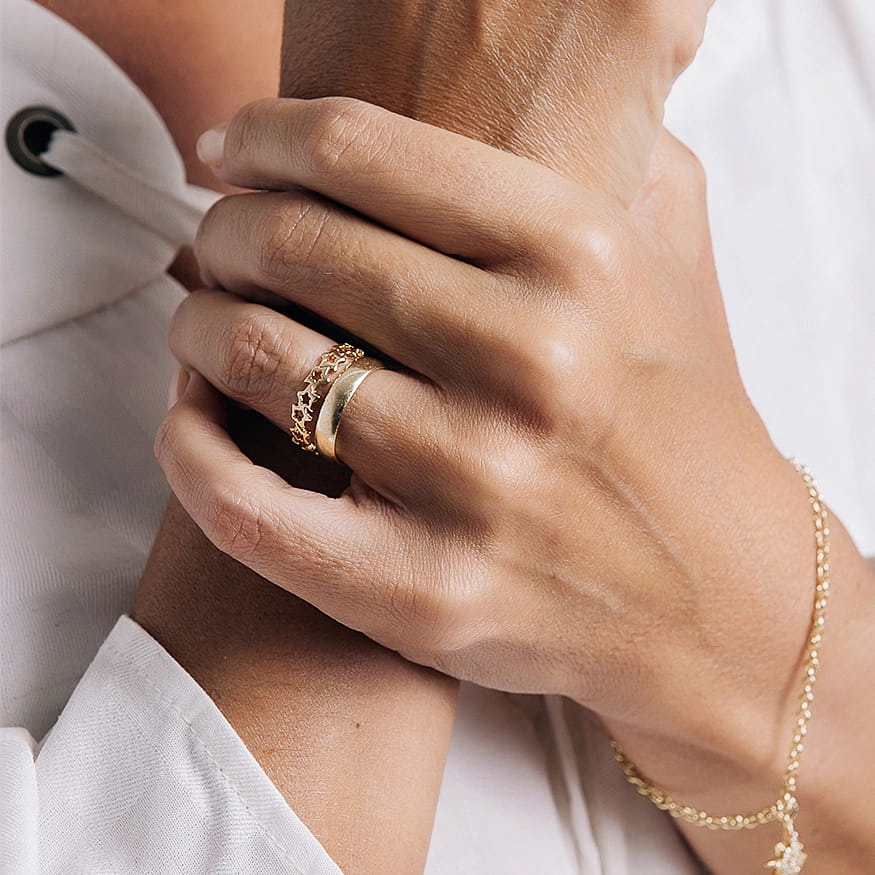 Anel Aro Estrelas Vazados Folheado a Ouro 18K