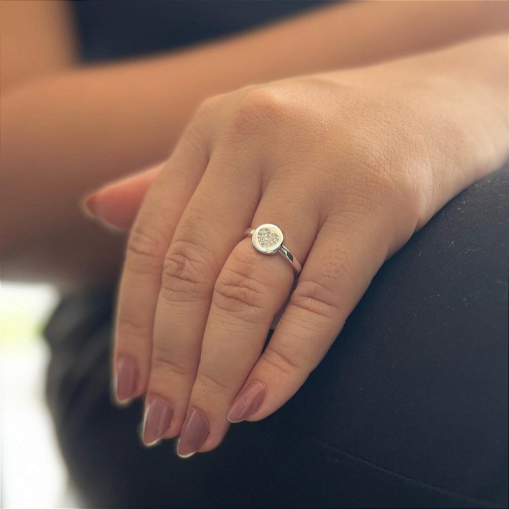 Anel Aro Liso com Coração cravejado Envolto por Circulo Folheado a prata 925