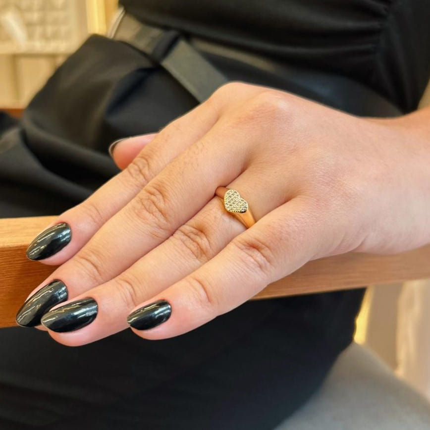 Anel Aro Liso com Coração Pavê Cravejado Cristal Folheado a ouro 18K