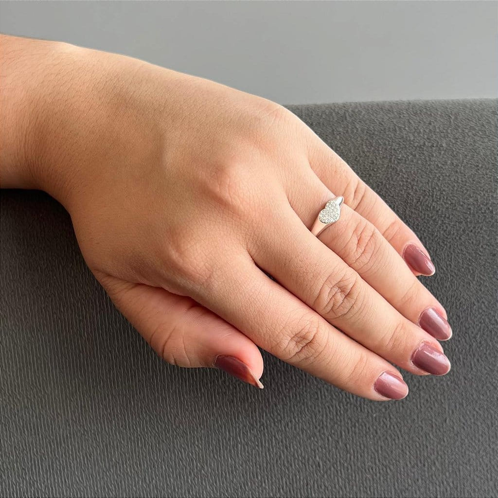 Anel Aro Liso com Coração Pavê Cravejado Cristal Folheado a prata 925