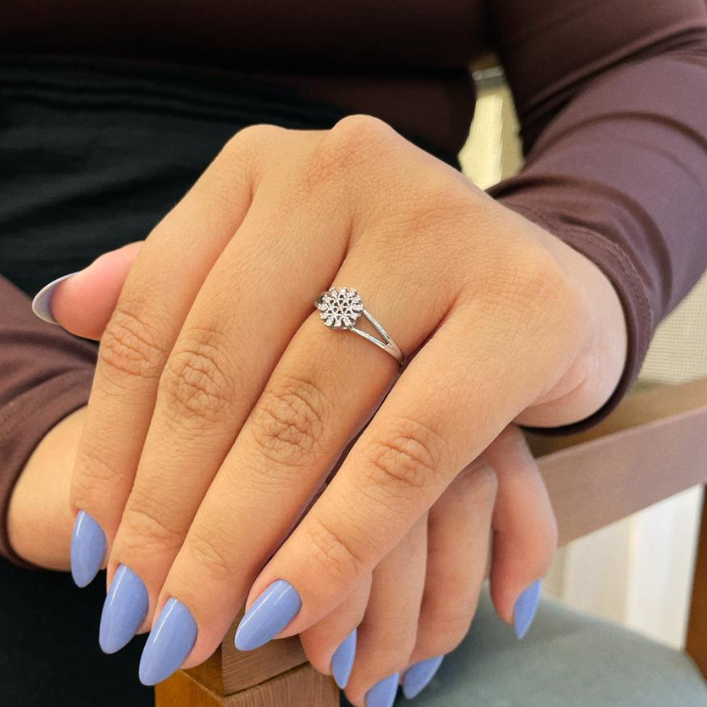 O aro liso garante um visual clean e confortável no dedo, enquanto a frente dupla com cravação em estilo chuveiro cria um ponto de brilho intenso e elegante, trazendo destaque à peça sem perder a sofisticação. O contraste entre o metal liso e o conjunto de zircônias valoriza ainda mais o design do anel.