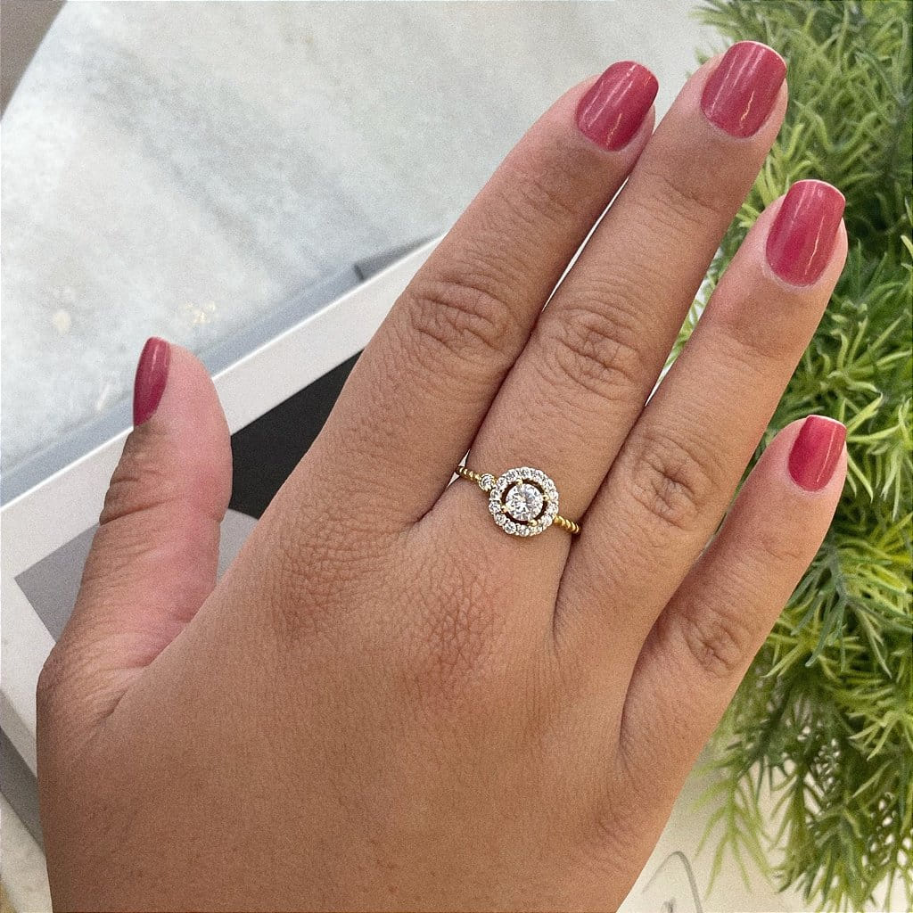 Anel Aro Torcido Solitário Com Borda Cravejado Folheado a Ouro 18K