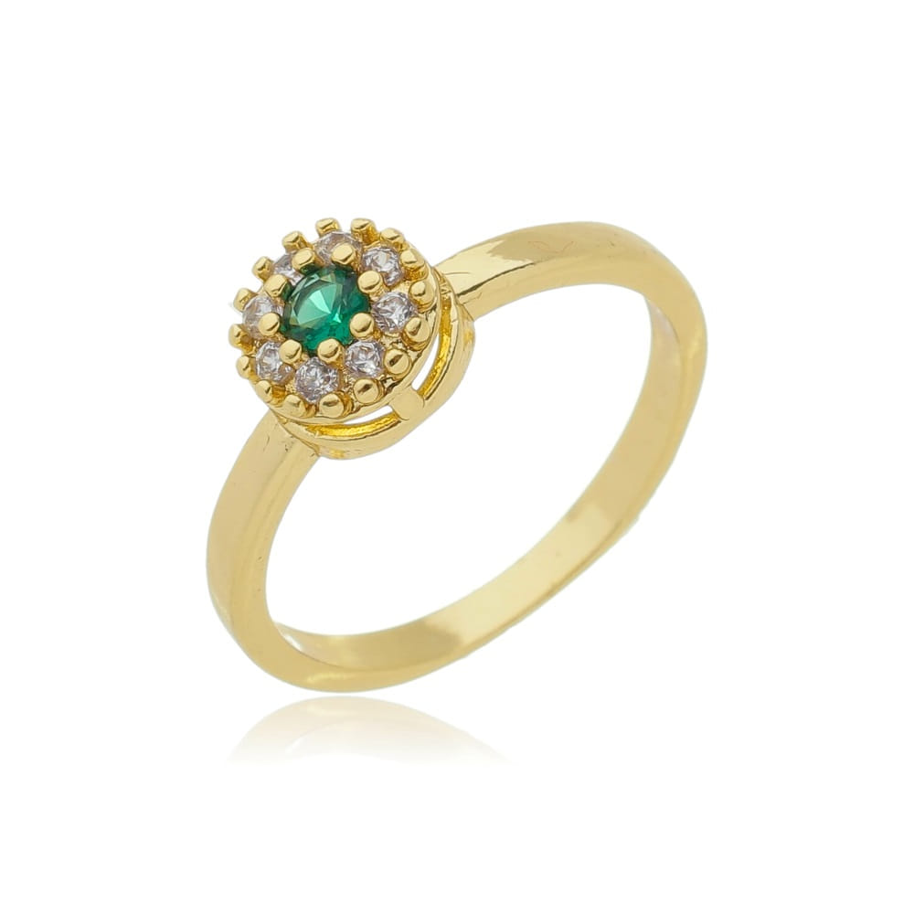 Anel Chuveiro Cristal Zirconia Verde Folheado a Ouro 18K