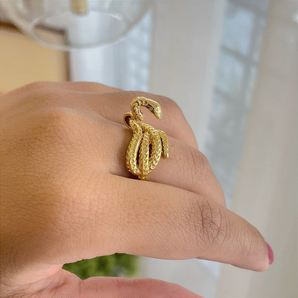 Anel Cobra Emaranhada Folheado a Ouro 18K