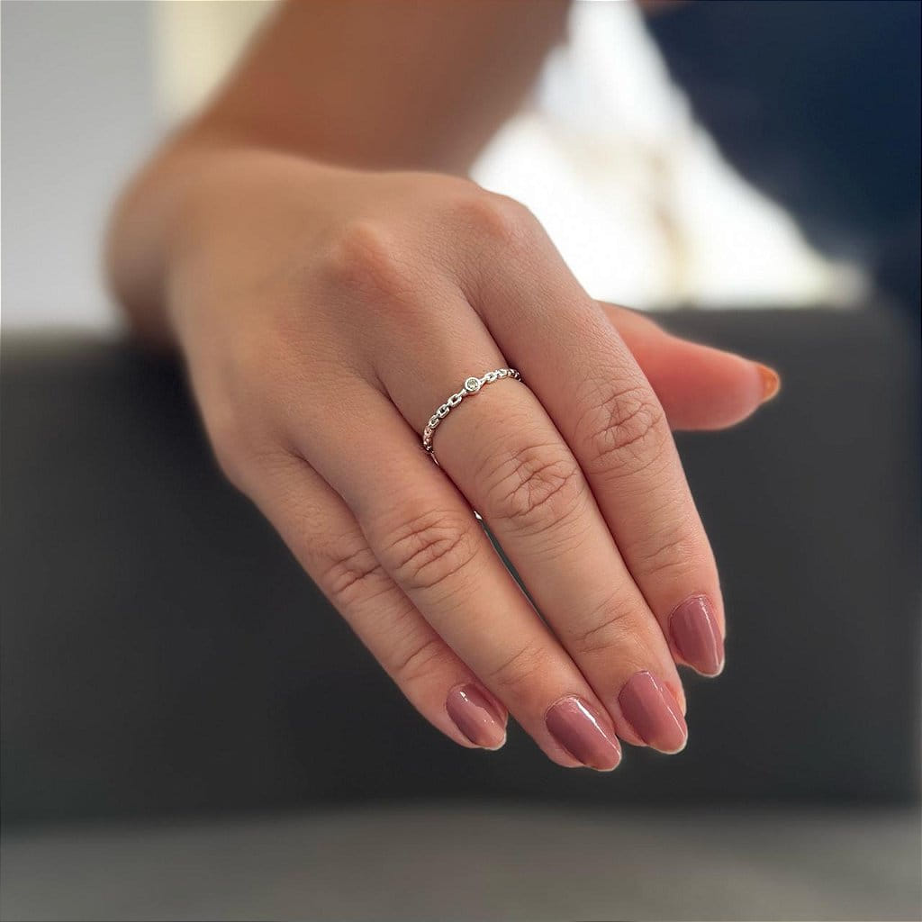 Anel com Aro de Corrente Lisa e Zircônia Redonda Folheado a prata 925