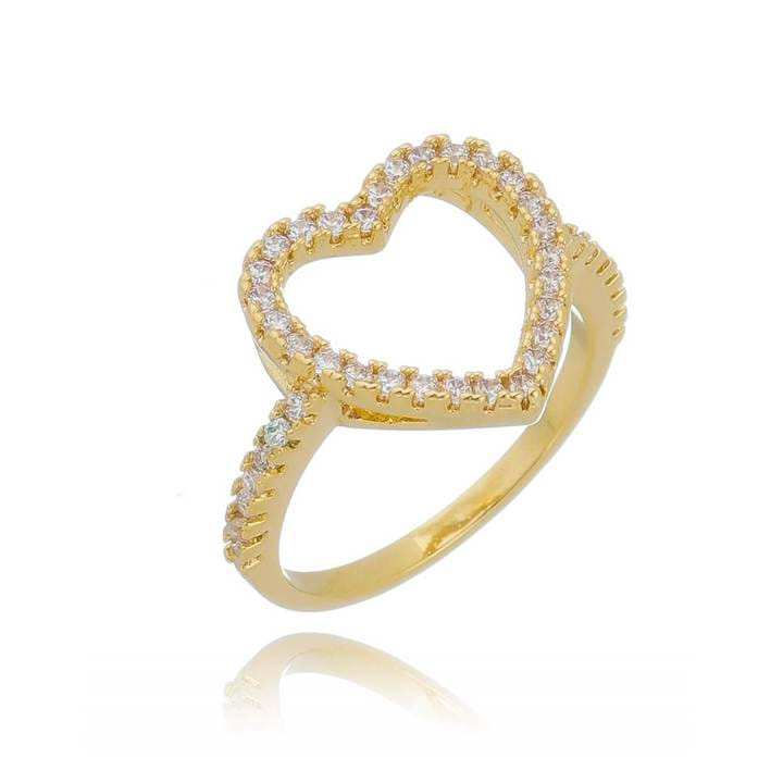 Anel Coração Grande Vazado Borda Cravejada Folheado a Ouro 18K