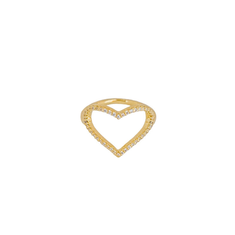 Anel Coração Grande Vazado Cravejado Folheado a Ouro 18K