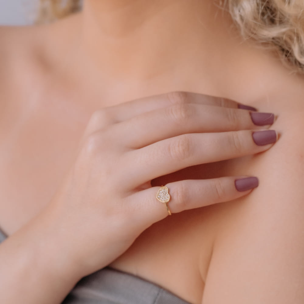 Descrição: O Anel Coração Pavê Cravejado Folheado a Ouro 18K é uma peça encantadora que expressa amor e elegância. Com um design que apresenta corações cravejados em um pavê delicado, este anel é perfeito para celebrar momentos especiais e demonstrar o seu carinho. Seu acabamento em ouro 18K adiciona um brilho excepcional à joia.