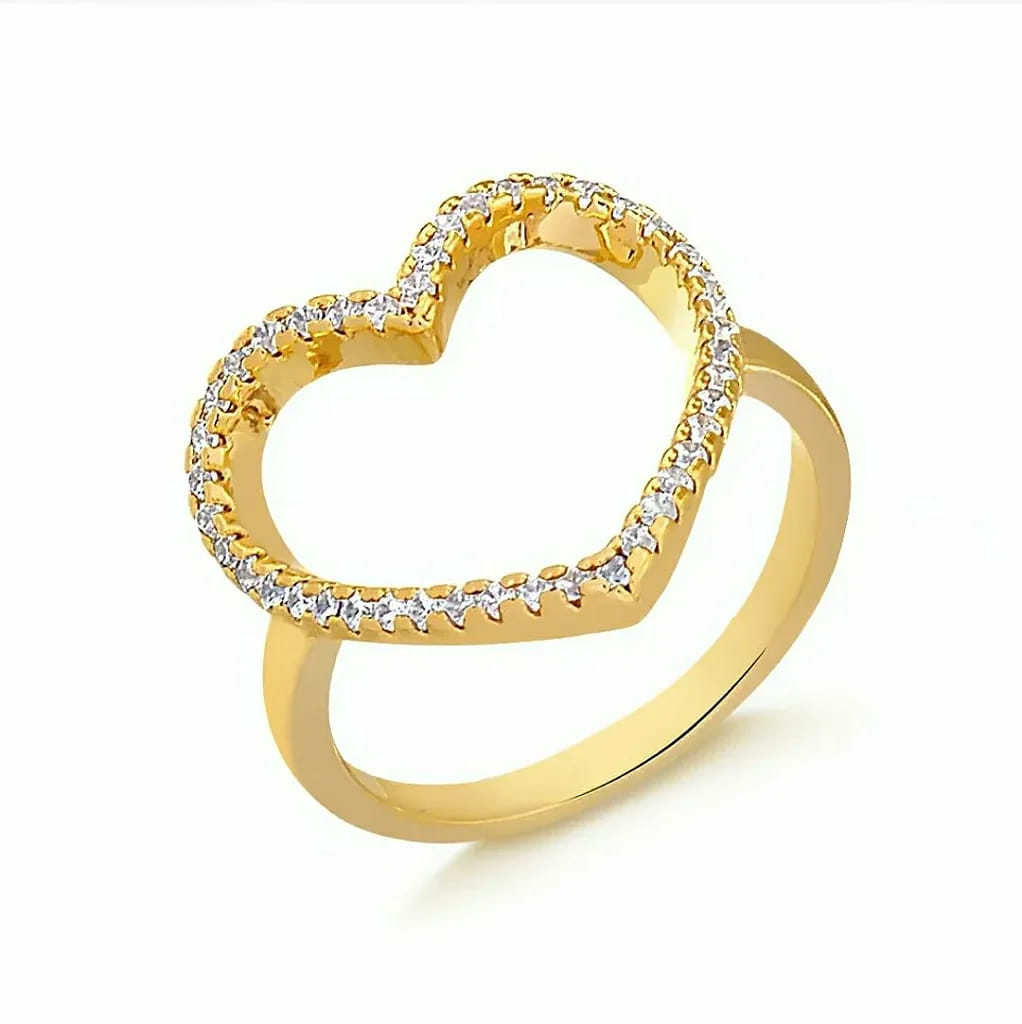 Anel Coração Vazado Borda Cravejada Grande Folheado a Ouro 18K
