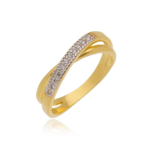 Anel Dois Fios Trançados Liso E Cravejado Folheado a Ouro 18K