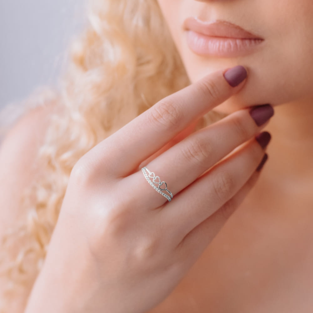 Descrição: O Anel Fio Duplo Corações Liso Folheado a Prata 925 é uma joia encantadora que combina elegância e simplicidade. Este anel apresenta um design de corações entrelaçados em um fio duplo, proporcionando um visual delicado e romântico.
