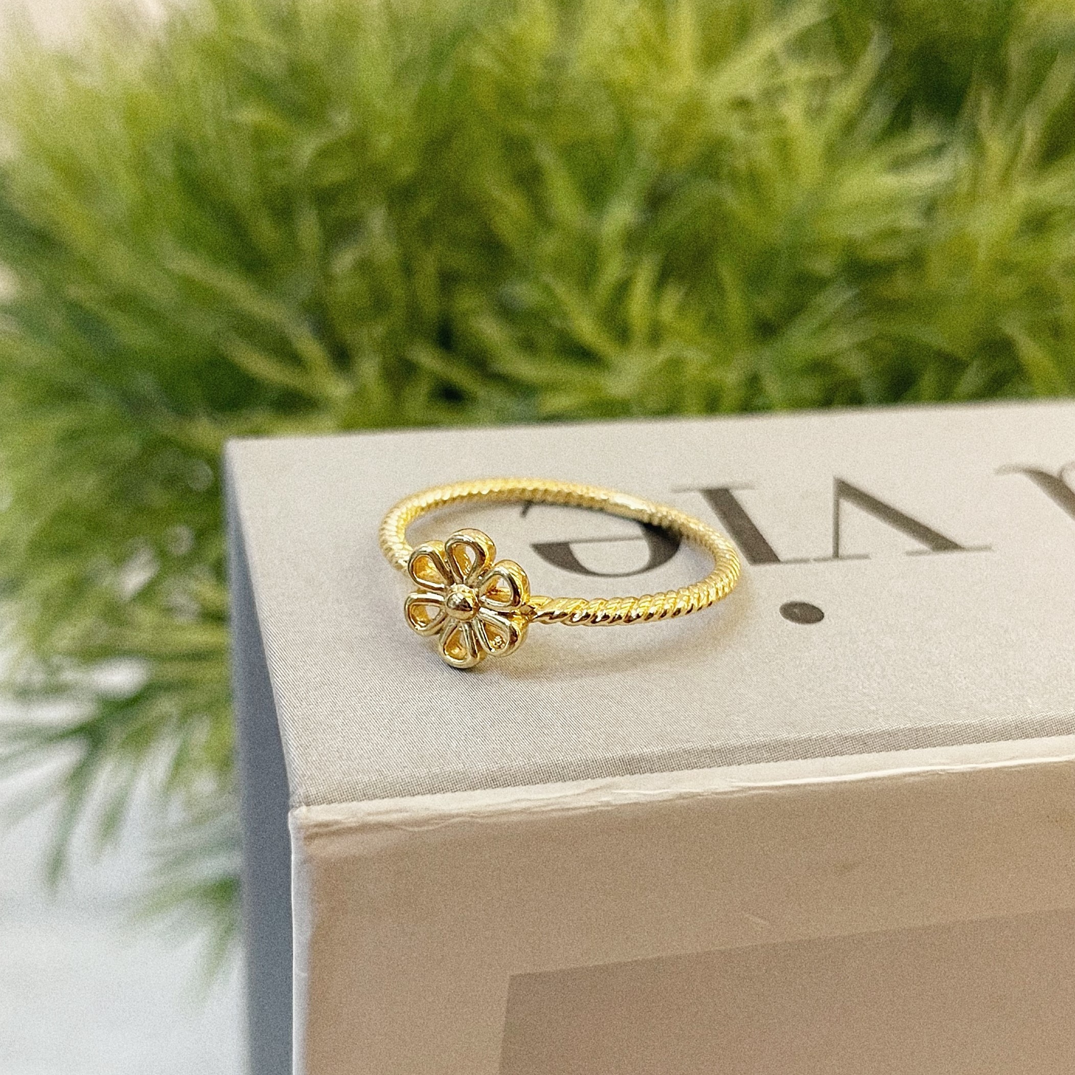 Anel Fio Fino Torcido Flor Vazada Folheado a Ouro 18K