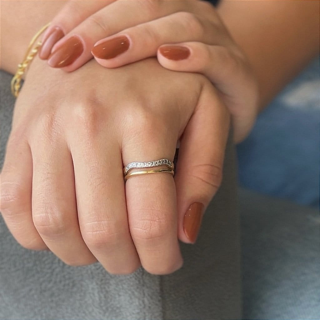 O Anel Fio Liso e Fio Ondulado Cravejado, folheado a Ouro 18K, é uma peça de joalheria que combina simplicidade e sofisticação de maneira única. Com um design que mescla um fio liso e um fio ondulado cravejado com zircônias brilhantes, este anel oferece um visual elegante e moderno, perfeito para qualquer ocasião.