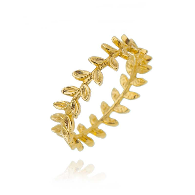 Anel Folhas Inteiro Folheado a Ouro 18K