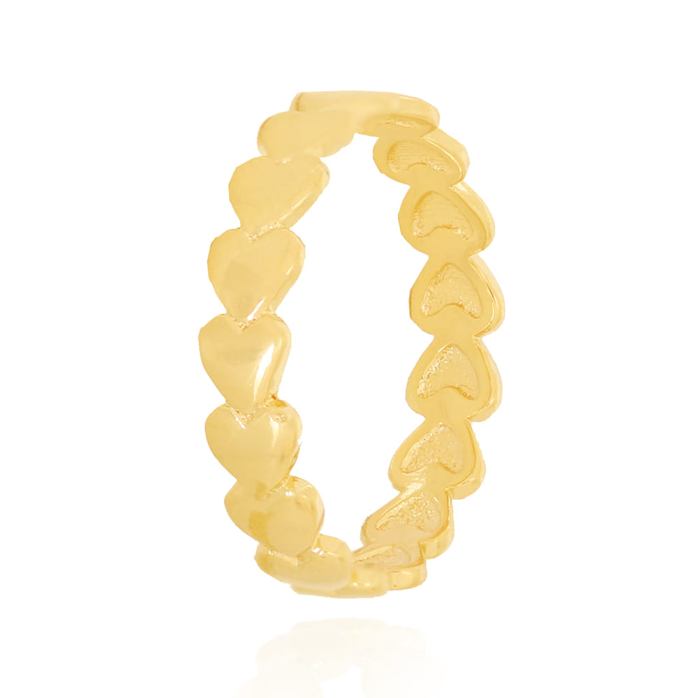 Anel Inteiro Corações Laterais Lisos Folheado a Ouro 18K
