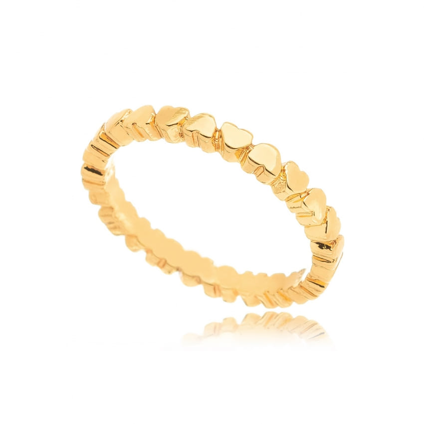 Anel Inteiro Corações Lisos Folheado a Ouro 18K