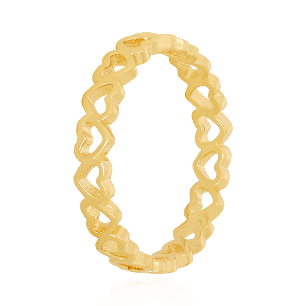 Anel Inteiro Corações Lisos Vazados Folheado a Ouro 18K
