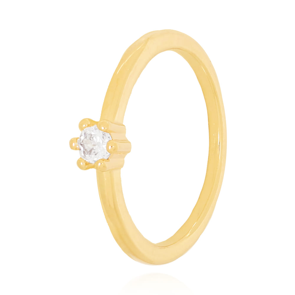Anel Solitário Galeria Folheado a Ouro 18K