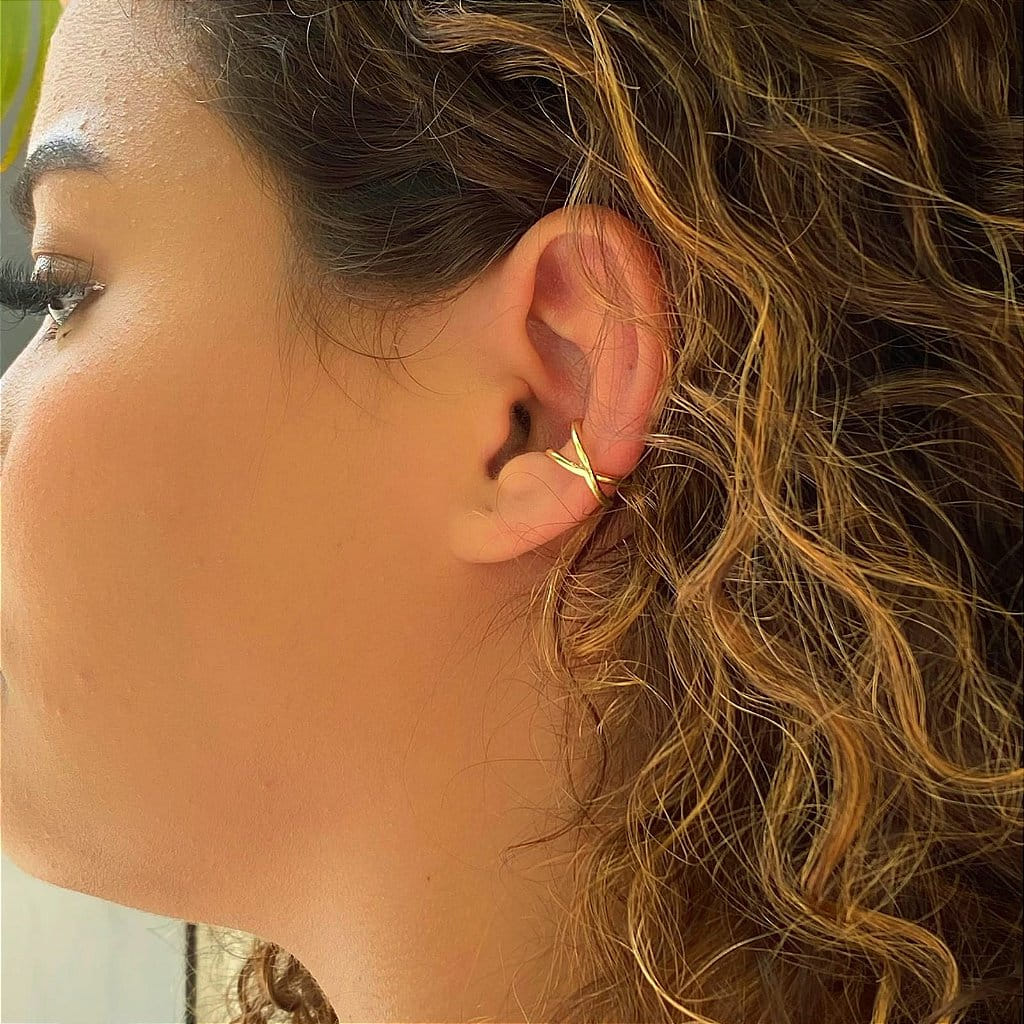 O Piercing Fake Fio Liso Cruzado, folheado a Ouro 18k, destaca-se pelo seu design moderno e elegante, perfeito para quem busca um toque de estilo sem a necessidade de perfuração. Com um design de fios lisos cruzados, este piercing oferece um visual sofisticado e versátil.