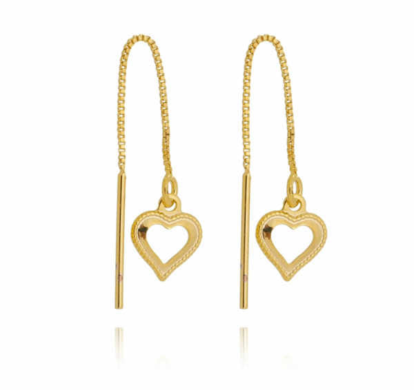 Brinco Anzol Coração Vazado Detalhado Folheado a Ouro 18K