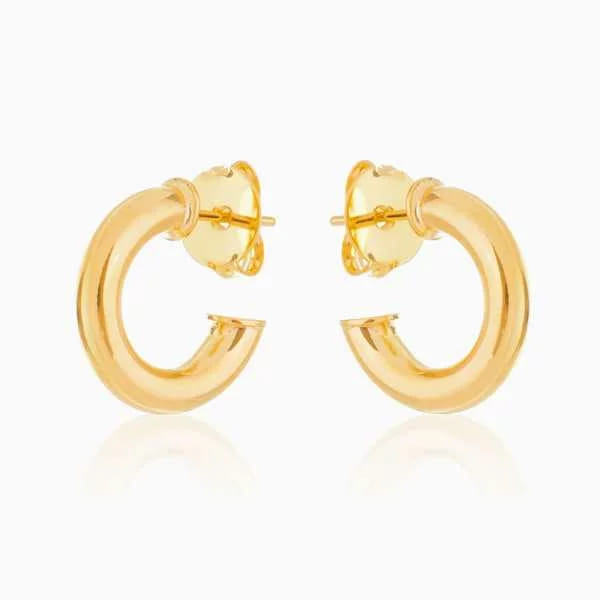 Brinco Argola Aberta Lisa Tubo Pp Folheado a Ouro 18K
