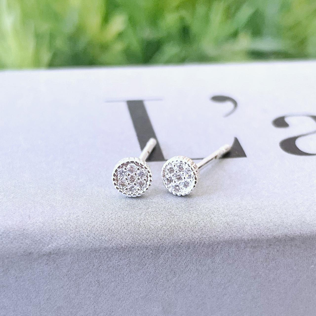 Brinco Chuveiro Pequeno Cravejado com Borda Granitada Folheado a prata 925