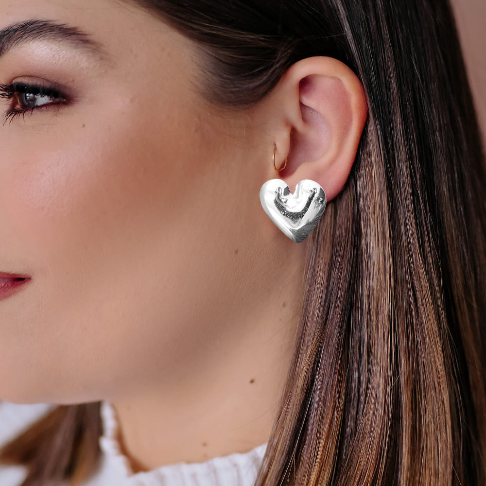 Este delicado brinco coração abaulado desenhado liso é perfeito para quem busca um toque romântico e elegante em seu visual. Folheado a prata 925, o brinco é confeccionado com materiais de alta qualidade, ideal para diversas ocasiões.