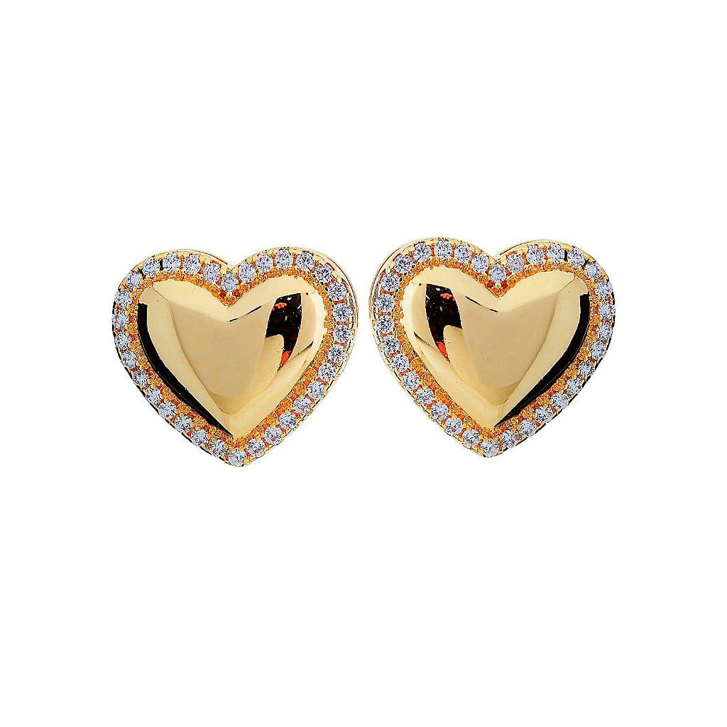 Brinco Coração Liso Borda Cravejado Folheado a Ouro 18K