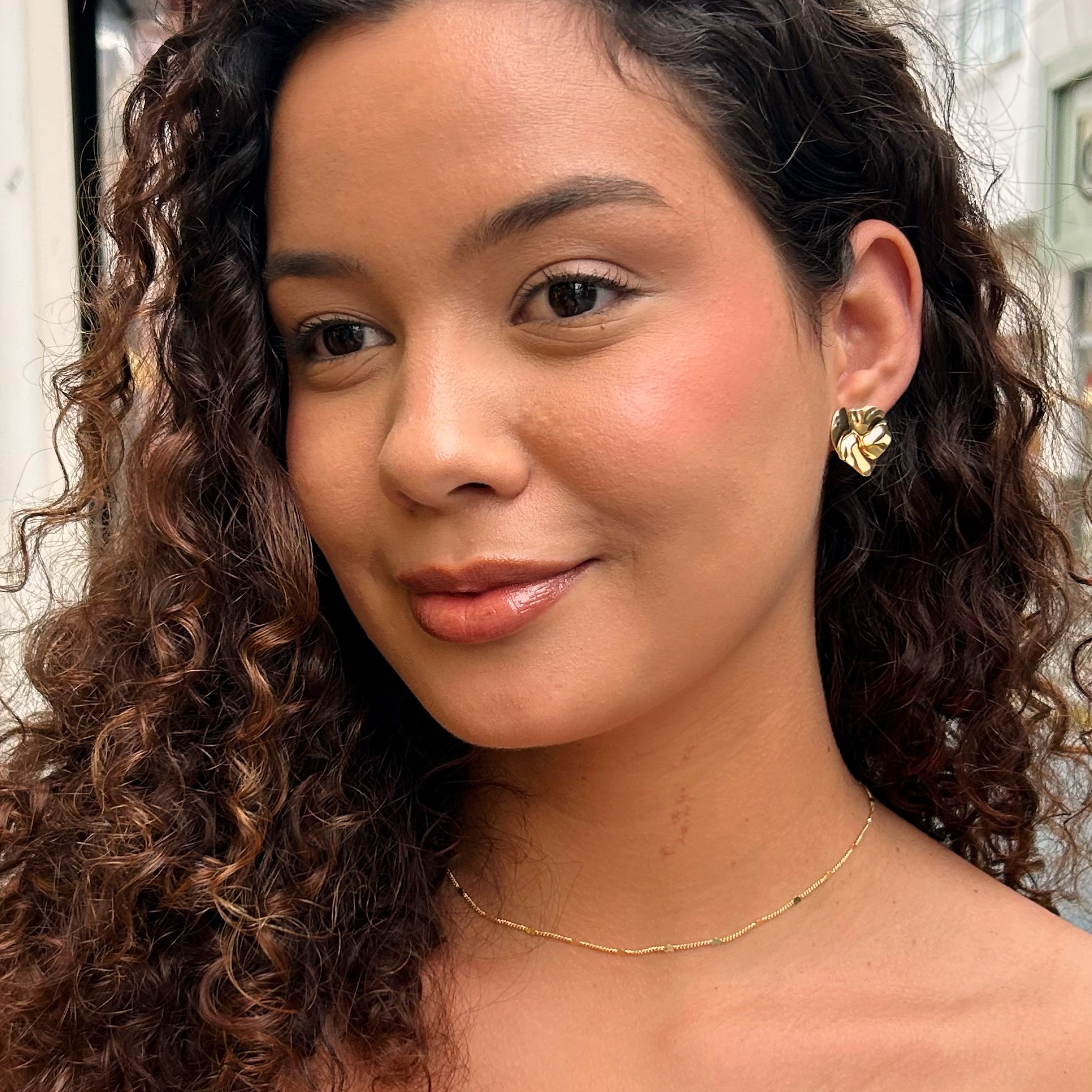 Brinco Coração Orgânico Achatado Folheado a ouro 18K