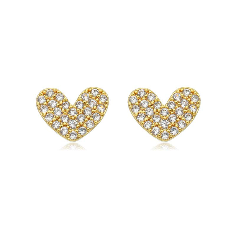 Brinco Coração Pavê Arredondado Folheado a Ouro 18K