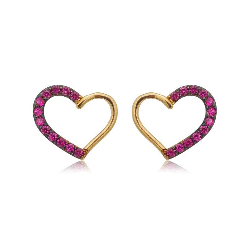Brinco Coração Vazado Gr Metade Cravejado Folheado a Ouro 18K