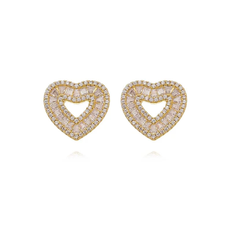 Brinco Coração Vazado Baguetes Folheado a Ouro 18K