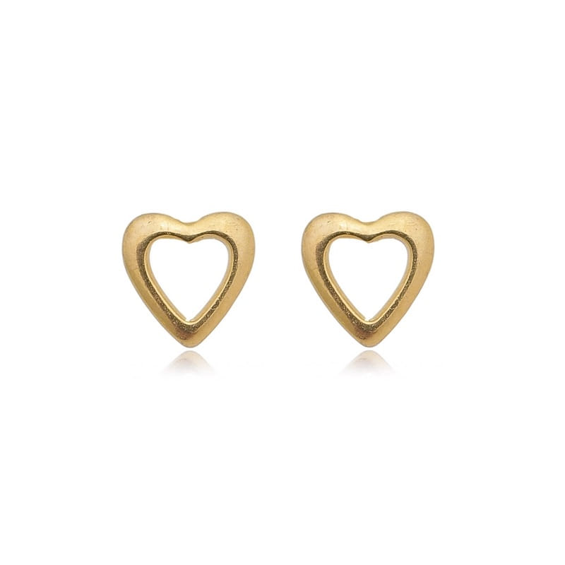 Brinco Coração Vazado Pequeno Folheado a Ouro 18K