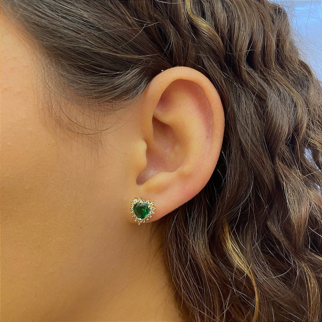 O Brinco Coração Verde com Borda Cravejada, folheado a Ouro 18K, é uma peça encantadora e sofisticada, ideal para quem busca um acessório que combine brilho e romantismo. O design apresenta um coração em uma vibrante tonalidade verde, cercado por uma borda cravejada de zircônias brilhantes, que adicionam um toque de glamour e destaque à peça.
