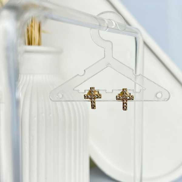 Brinco Cruz Fio Cravejado Pequeno Folheado a Ouro 18K