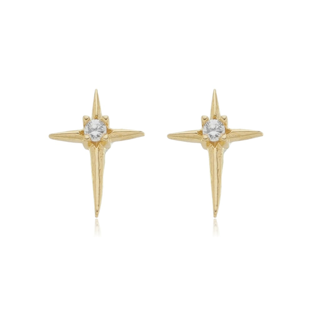 Brinco Cruz Lisa 1 Zirconia Folheado a Ouro 18K