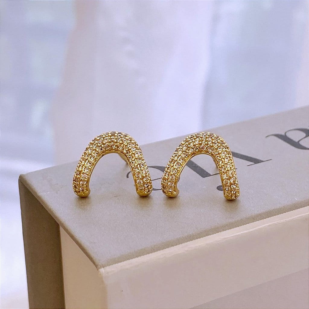 Brinco Curvo Cravejado Folheado a ouro 18K