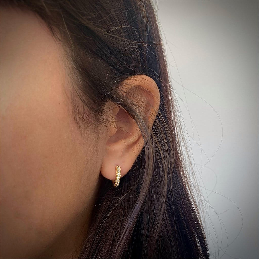 Brinco de Argola 1 Fio Cravejado Slim M Folheado a ouro 18K