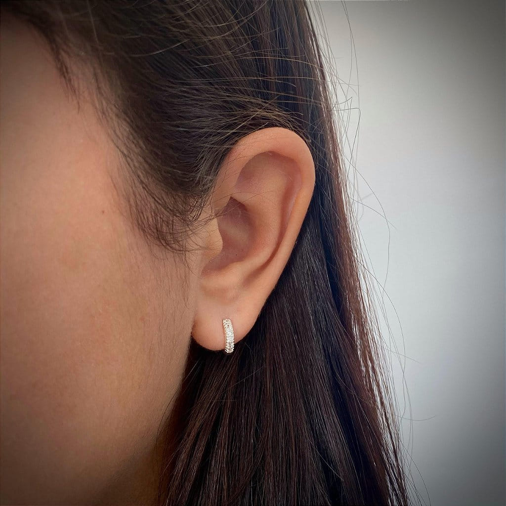 Brinco de Argola 1 Fio Cravejado Slim P Folheado a prata 925