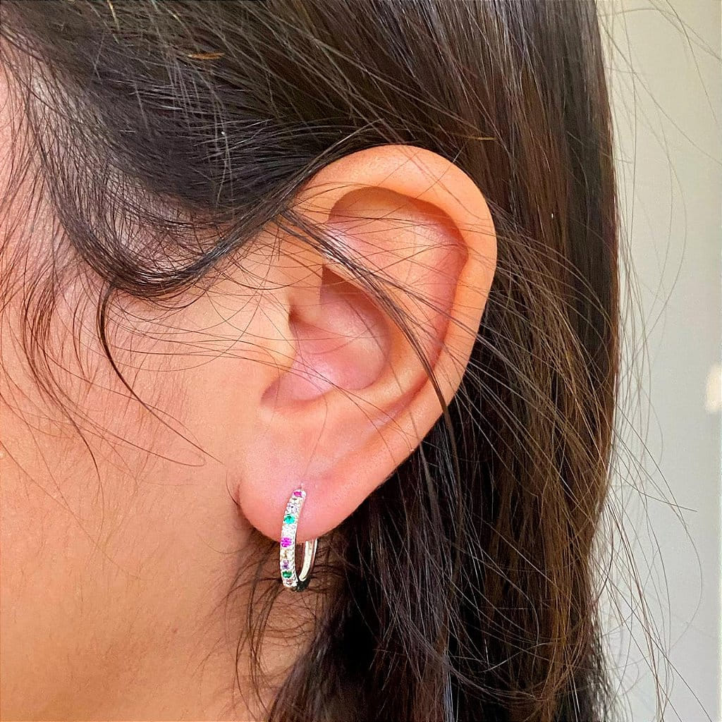 Brinco de Argola 1 Fio Cravejado Slim Rainbow G Folheado a prata 925